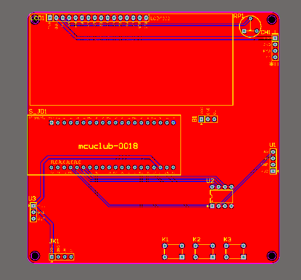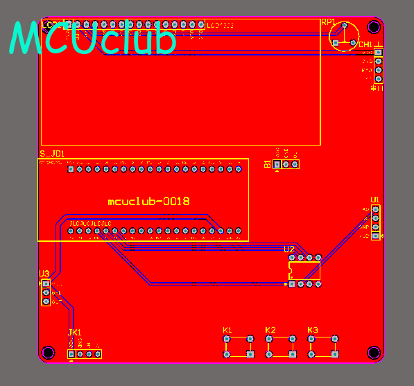 注意:PCB图中间有一个项目编号,隐藏在单片机底座下,插入单片机后不会看到。如果想截没有项目编号的PCB图,可在PCB源文件中点击删除。另外,如果想在实物PCB板上加自己的信息(比如日期、学号、姓名等),可联系客服。