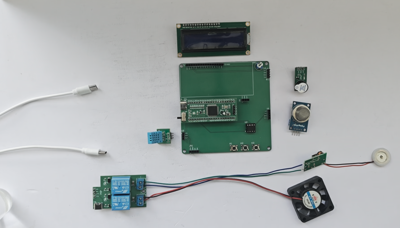 2、通过MQ-135模块检测苯气体值,当苯气体值大于设置最大值时开启风扇和净化器,同时进行声光报警提醒