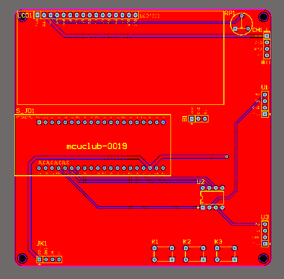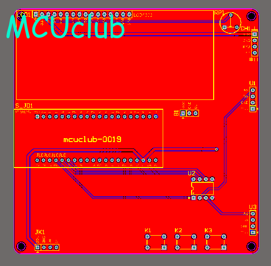 注意:PCB图中间有一个项目编号,隐藏在单片机底座下,插入单片机后不会看到。如果想截没有项目编号的PCB图,可在PCB源文件中点击删除。另外,如果想在实物PCB板上加自己的信息(比如日期、学号、姓名等),可联系客服。