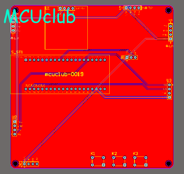 注意:PCB图中间有一个项目编号,隐藏在单片机底座下,插入单片机后不会看到。如果想截没有项目编号的PCB图,可在PCB源文件中点击删除。另外,如果想在实物PCB板上加自己的信息(比如日期、学号、姓名等),可联系客服。