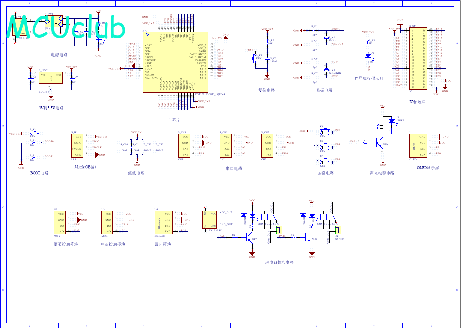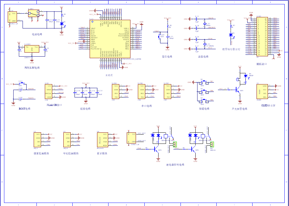 PCB图是由原理图导出,封装很大一部分都是作者自己绘制,不提供封装库,只提供连接好的源文件,可以直接在嘉立创进行打板。两层板,上下覆铜接地。
