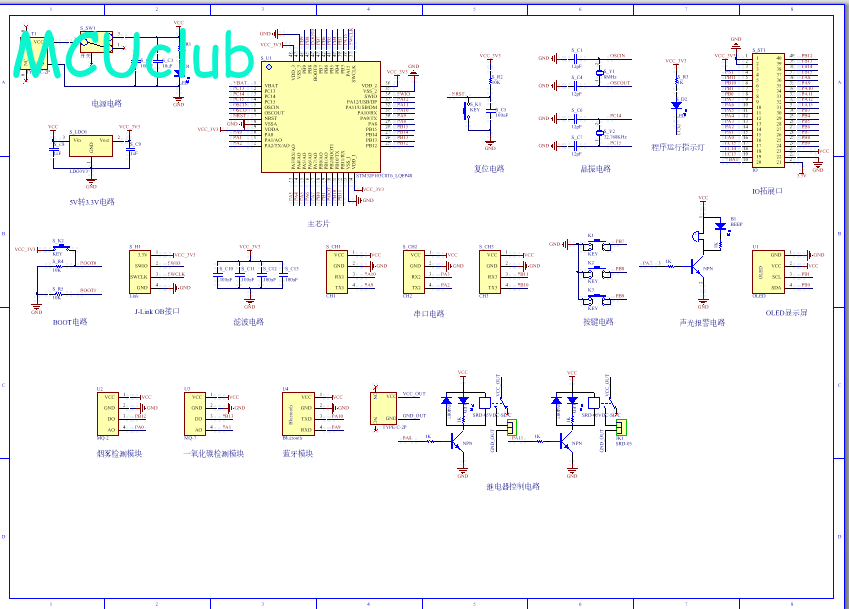 PCB图是由原理图导出,封装很大一部分都是作者自己绘制,不提供封装库,只提供连接好的源文件,可以直接在嘉立创进行打板。两层板,上下覆铜接地。