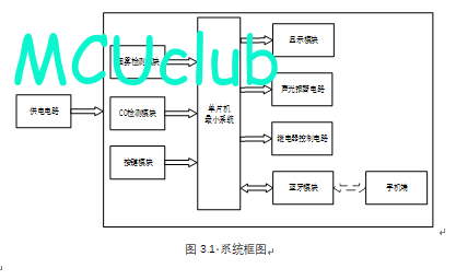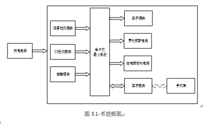 3、通过按键设置烟雾及CO最大值,另外,当烟雾值小于等于设置最大值并且CO值小于等于设置最大值时,可手动控制风扇或净化器开关