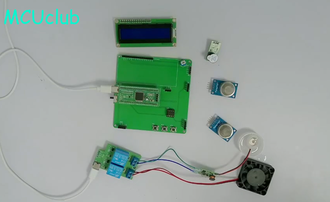 1、通过MQ-2模块检测烟雾值,当烟雾值大于设置最大值时开启风扇和净化器,同时进行声光报警提醒