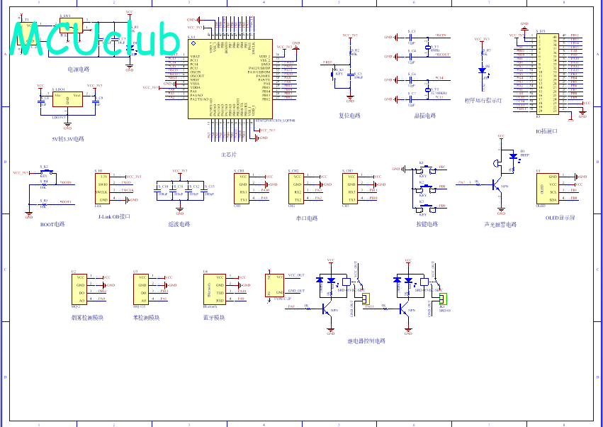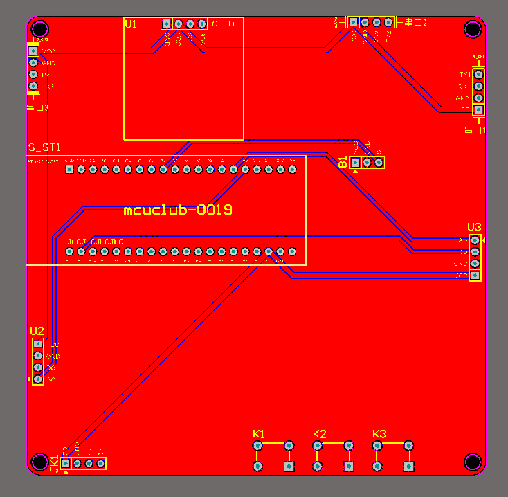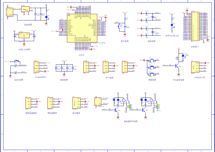 PCB图是由原理图导出,封装很大一部分都是作者自己绘制,不提供封装库,只提供连接好的源文件,可以直接在嘉立创进行打板。两层板,上下覆铜接地。