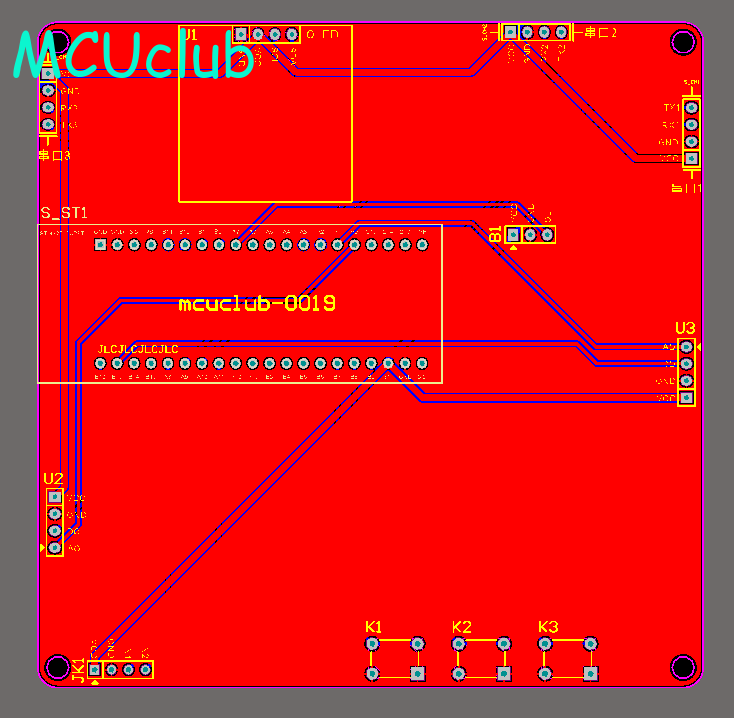 注意:PCB图中间有一个项目编号,隐藏在单片机底座下,插入单片机后不会看到。如果想截没有项目编号的PCB图,可在PCB源文件中点击删除。另外,如果想在实物PCB板上加自己的信息(比如日期、学号、姓名等),可联系客服。