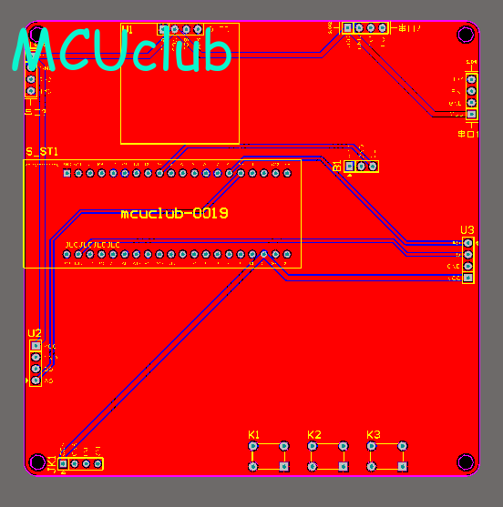 注意:PCB图中间有一个项目编号,隐藏在单片机底座下,插入单片机后不会看到。如果想截没有项目编号的PCB图,可在PCB源文件中点击删除。另外,如果想在实物PCB板上加自己的信息(比如日期、学号、姓名等),可联系客服。