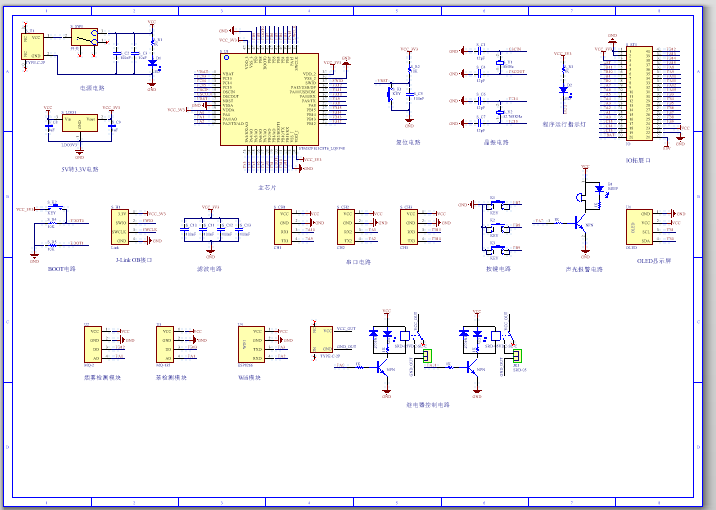 PCB图是由原理图导出,封装很大一部分都是作者自己绘制,不提供封装库,只提供连接好的源文件,可以直接在嘉立创进行打板。两层板,上下覆铜接地。