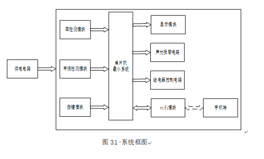 3、通过按键设置烟雾及苯气体最大值,另外,当烟雾值小于等于设置最大值并且苯气体值小于等于设置最大值时,可手动控制风扇或净化器开关
