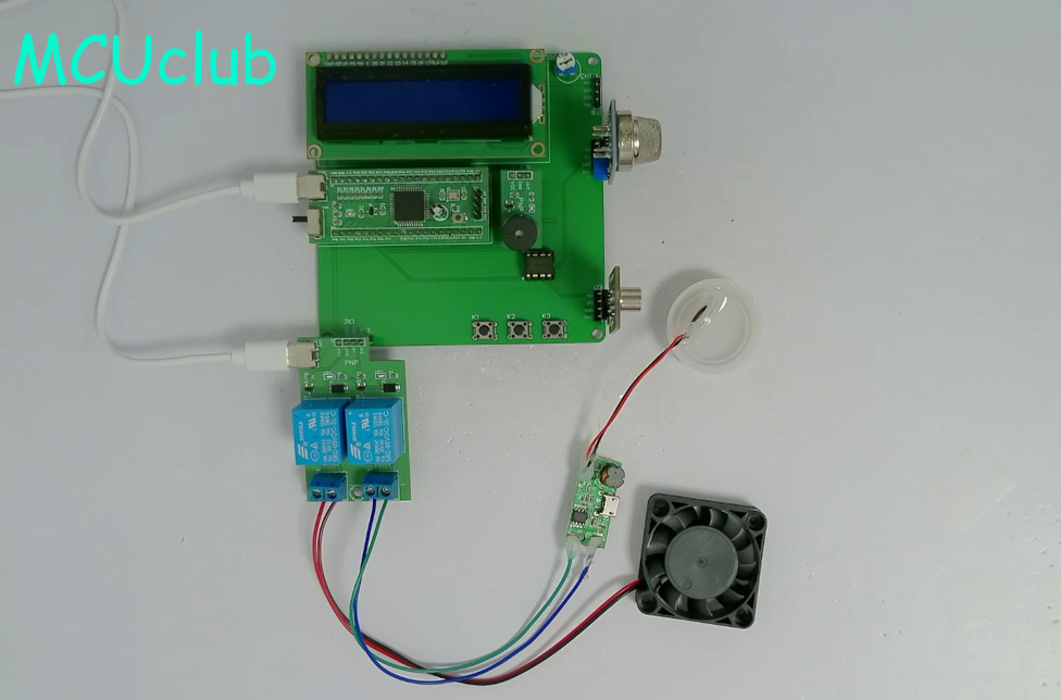 1、通过MQ-2模块检测烟雾值,当烟雾值大于设置最大值时开启风扇和净化器,同时进行声光报警提醒