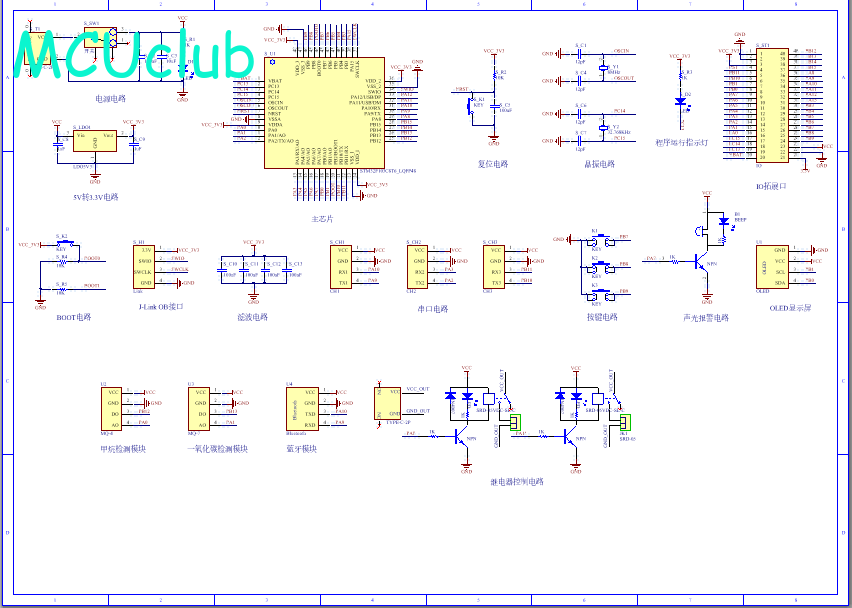 PCB图是由原理图导出,封装很大一部分都是作者自己绘制,不提供封装库,只提供连接好的源文件,可以直接在嘉立创进行打板。两层板,上下覆铜接地。