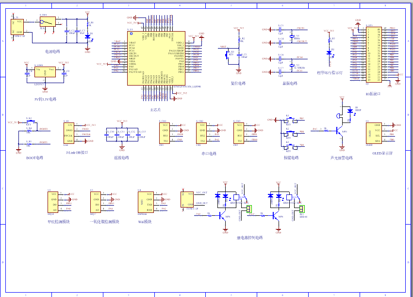 PCB图是由原理图导出,封装很大一部分都是作者自己绘制,不提供封装库,只提供连接好的源文件,可以直接在嘉立创进行打板。两层板,上下覆铜接地。