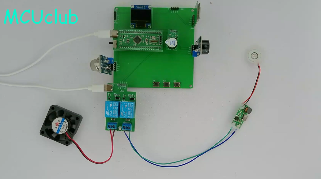 2、通过MQ-7模块检测CO值,当CO值大于设置最大值时开启风扇和净化器,同时进行声光报警提醒