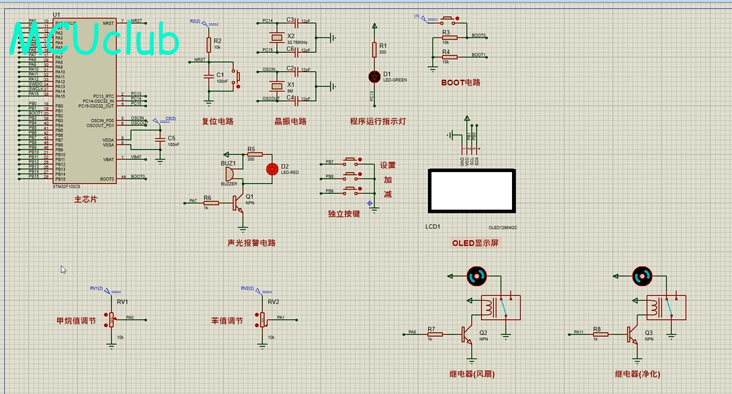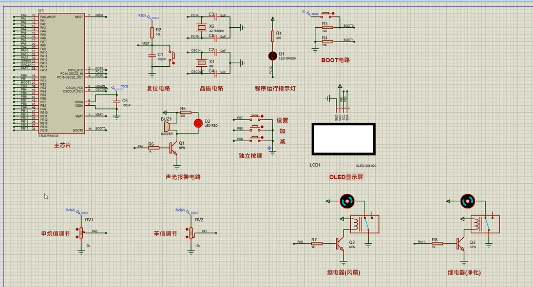 注意:部分实物元器件仿真中没有,仿真中会用其他工作原理相似的元件代替,这样可能导致实物程序和仿真程序不一样