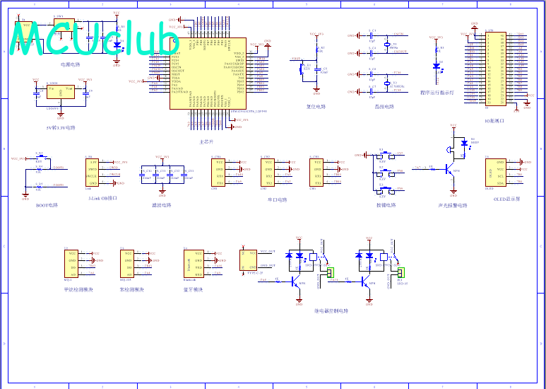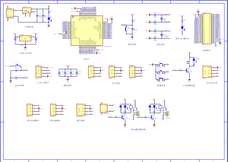PCB图是由原理图导出,封装很大一部分都是作者自己绘制,不提供封装库,只提供连接好的源文件,可以直接在嘉立创进行打板。两层板,上下覆铜接地。