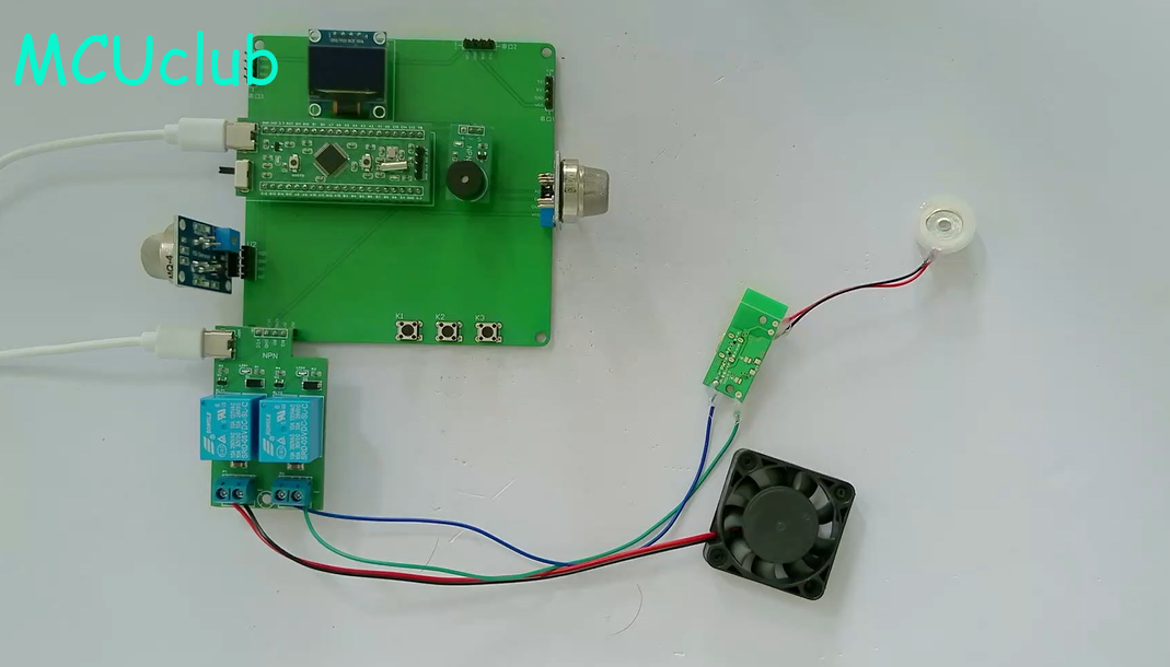 2、通过MQ-135模块检测苯气体值,当苯气体值大于设置最大值时开启风扇和净化器,同时进行声光报警提醒