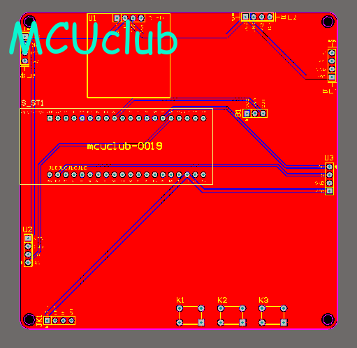 注意:PCB图中间有一个项目编号,隐藏在单片机底座下,插入单片机后不会看到。如果想截没有项目编号的PCB图,可在PCB源文件中点击删除。另外,如果想在实物PCB板上加自己的信息(比如日期、学号、姓名等),可联系客服。