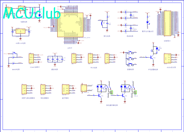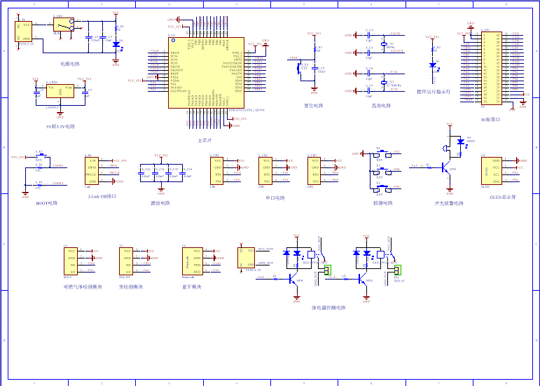 PCB图是由原理图导出,封装很大一部分都是作者自己绘制,不提供封装库,只提供连接好的源文件,可以直接在嘉立创进行打板。两层板,上下覆铜接地。