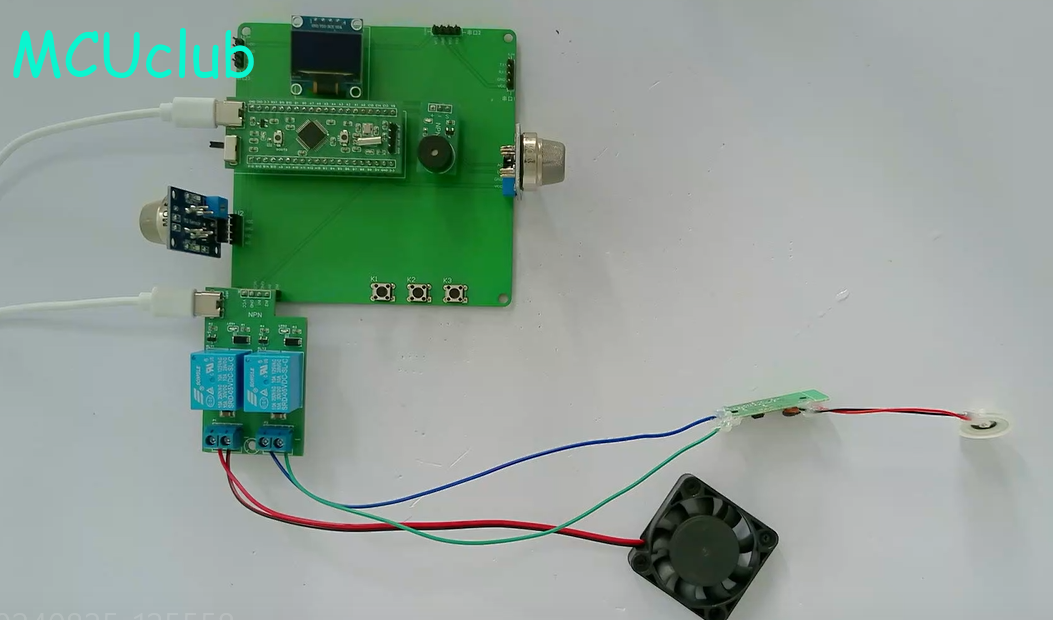 1、通过MQ-5模块检测可燃气体值,当可燃气体值大于设置最大值时开启风扇和净化器,同时进行声光报警提醒