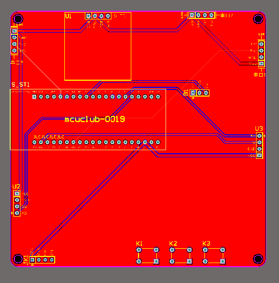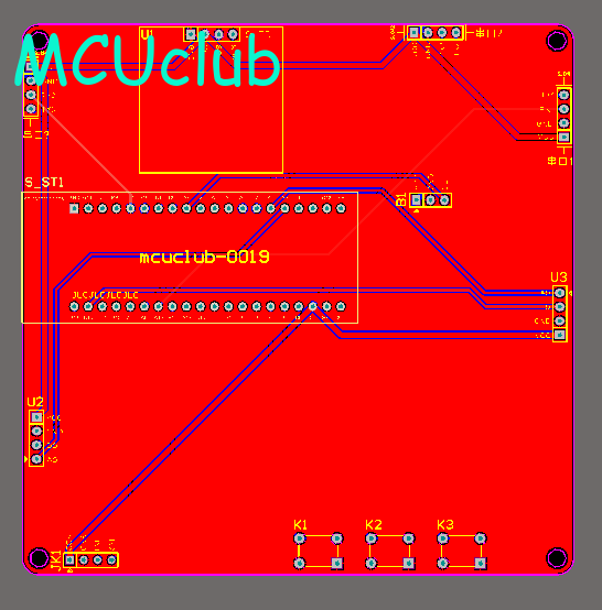 注意:PCB图中间有一个项目编号,隐藏在单片机底座下,插入单片机后不会看到。如果想截没有项目编号的PCB图,可在PCB源文件中点击删除。另外,如果想在实物PCB板上加自己的信息(比如日期、学号、姓名等),可联系客服。