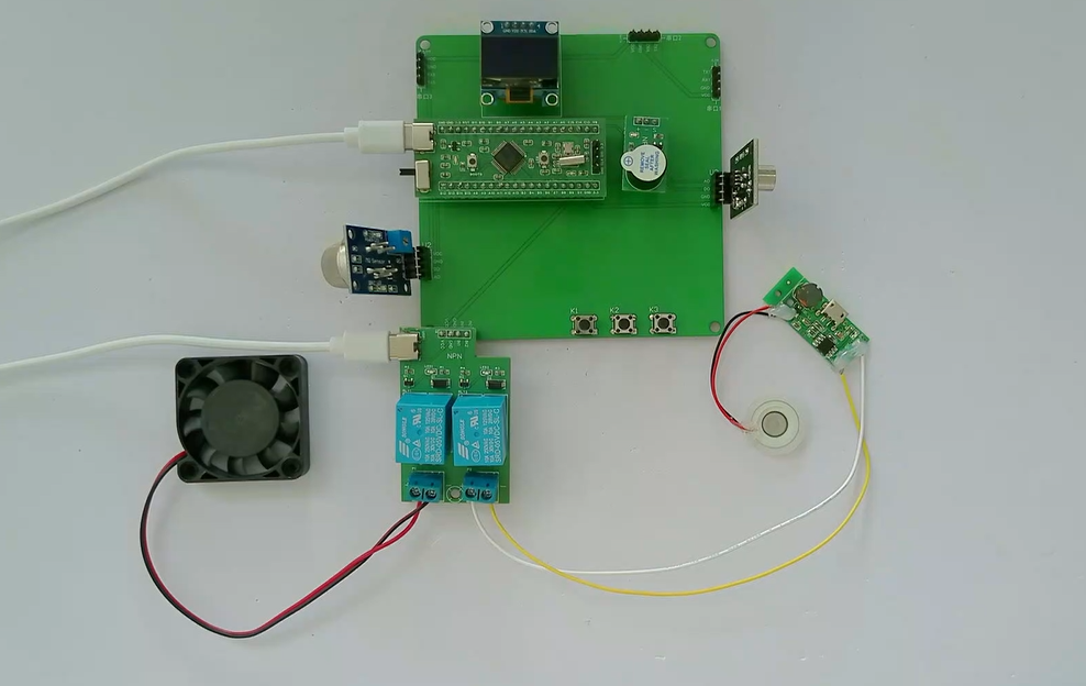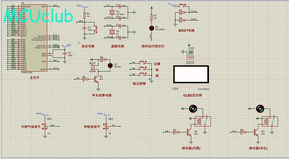 2、通过MS1100模块检测甲醛值,当甲醛值大于设置最大值时开启风扇和净化器,同时进行声光报警提醒