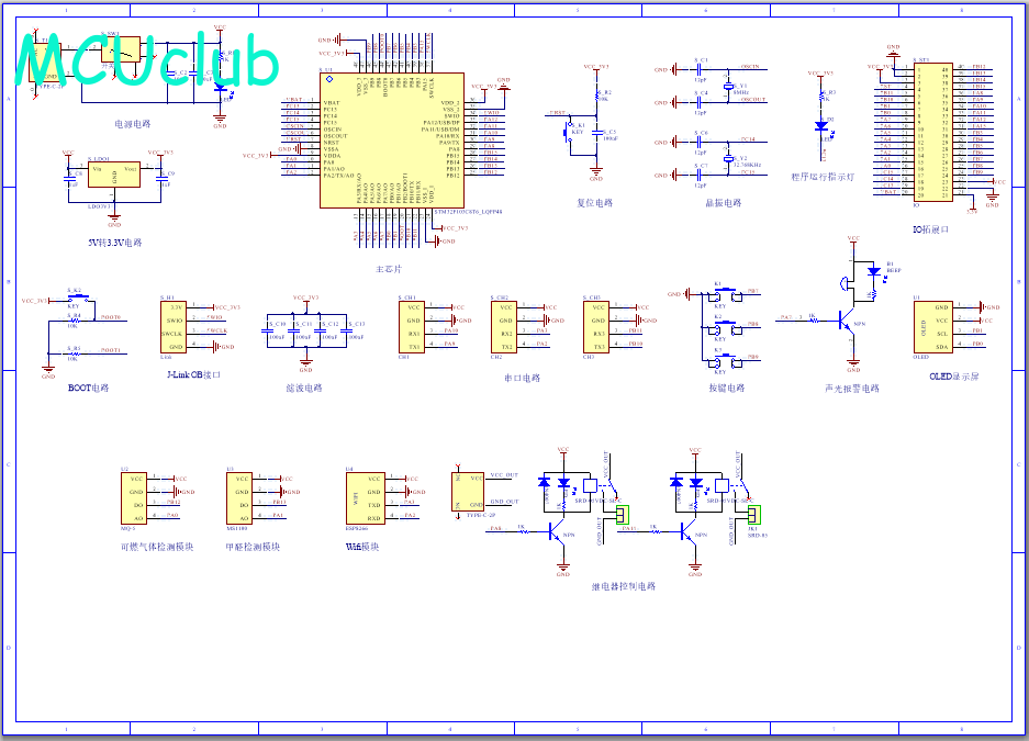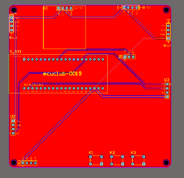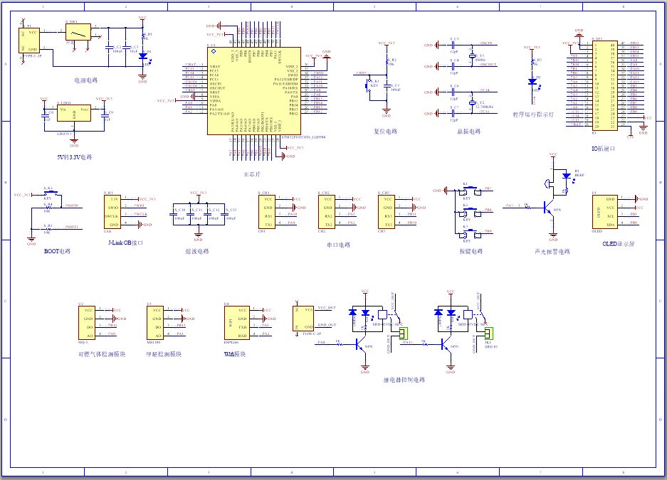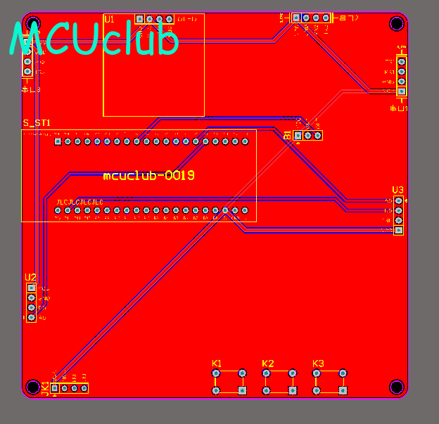 PCB图是由原理图导出,封装很大一部分都是作者自己绘制,不提供封装库,只提供连接好的源文件,可以直接在嘉立创进行打板。两层板,上下覆铜接地。
