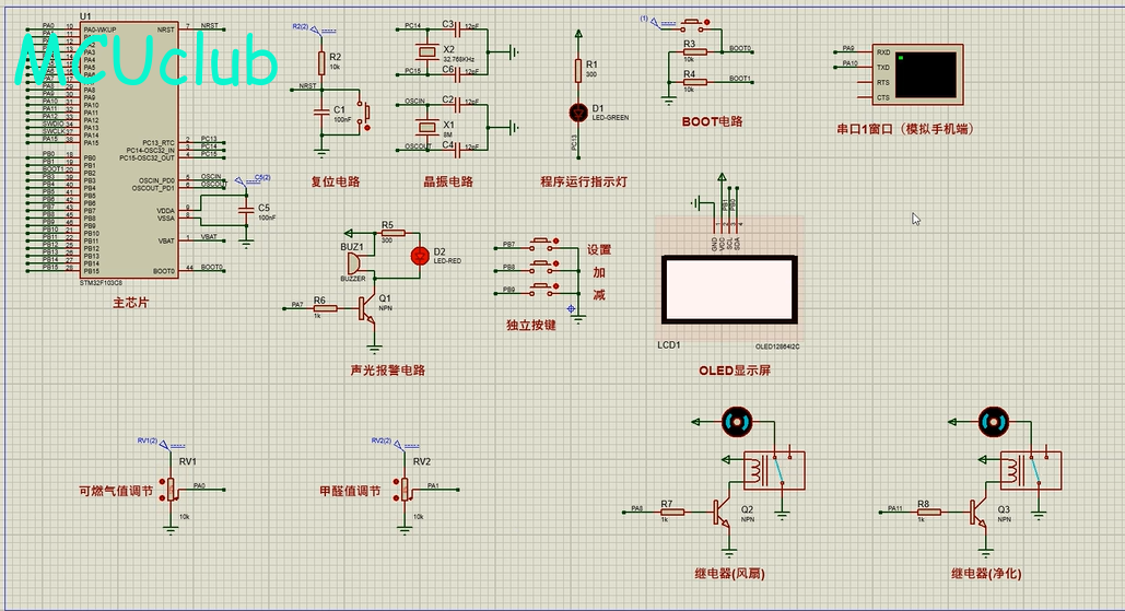 注意:部分实物元器件仿真中没有,仿真中会用其他工作原理相似的元件代替,这样可能导致实物程序和仿真程序不一样