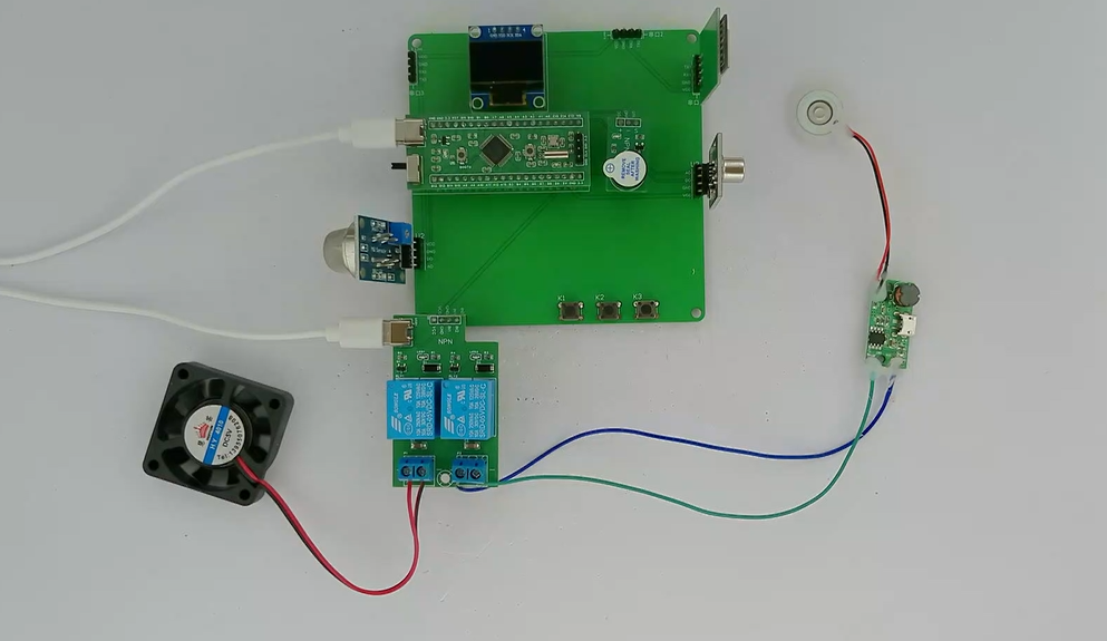 2、通过MS1100模块检测甲醛值,当甲醛值大于设置最大值时开启风扇和净化器,同时进行声光报警提醒