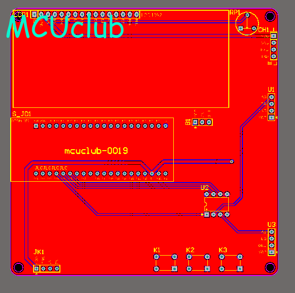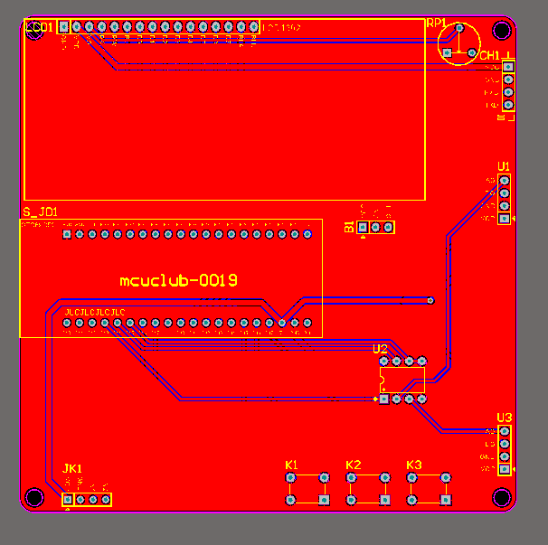 注意:PCB图中间有一个项目编号,隐藏在单片机底座下,插入单片机后不会看到。如果想截没有项目编号的PCB图,可在PCB源文件中点击删除。另外,如果想在实物PCB板上加自己的信息(比如日期、学号、姓名等),可联系客服。