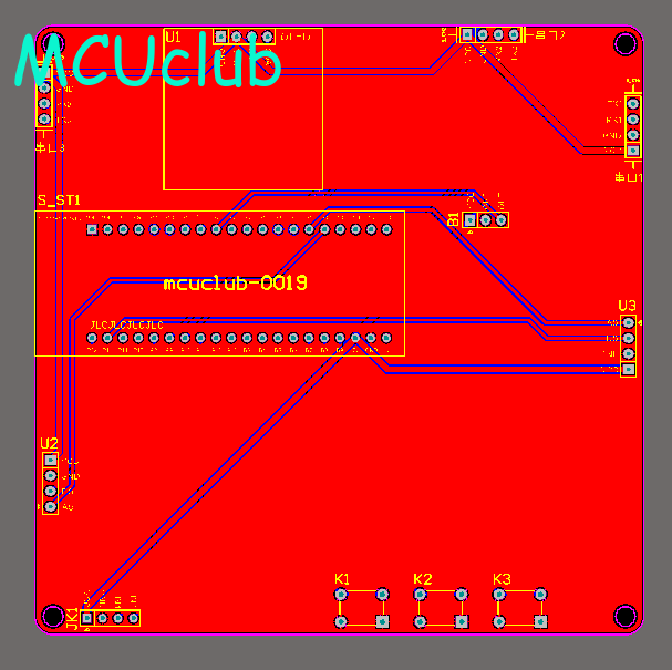 注意:PCB图中间有一个项目编号,隐藏在单片机底座下,插入单片机后不会看到。如果想截没有项目编号的PCB图,可在PCB源文件中点击删除。另外,如果想在实物PCB板上加自己的信息(比如日期、学号、姓名等),可联系客服。