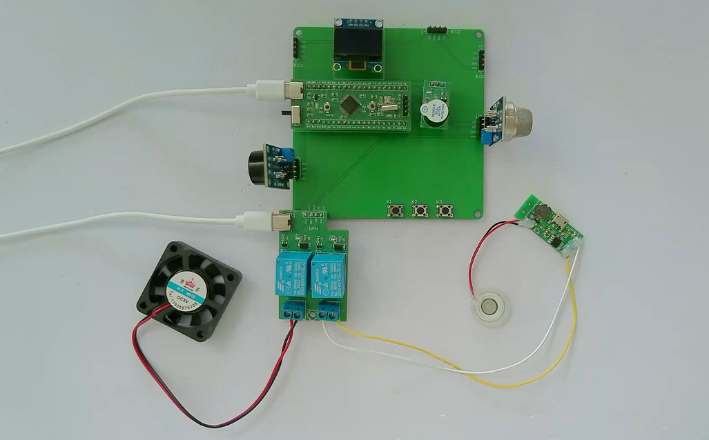 1、通过MQ-7模块检测CO值,当CO值大于设置最大值时开启风扇和净化器,同时进行声光报警提醒