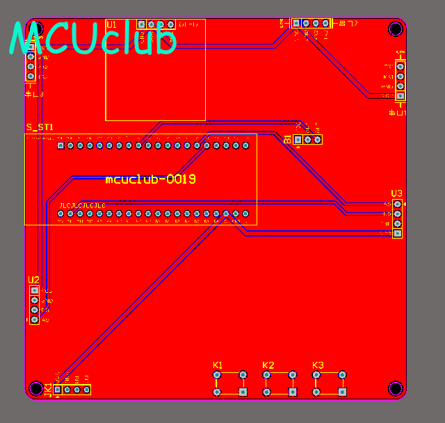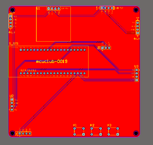 注意:PCB图中间有一个项目编号,隐藏在单片机底座下,插入单片机后不会看到。如果想截没有项目编号的PCB图,可在PCB源文件中点击删除。另外,如果想在实物PCB板上加自己的信息(比如日期、学号、姓名等),可联系客服。