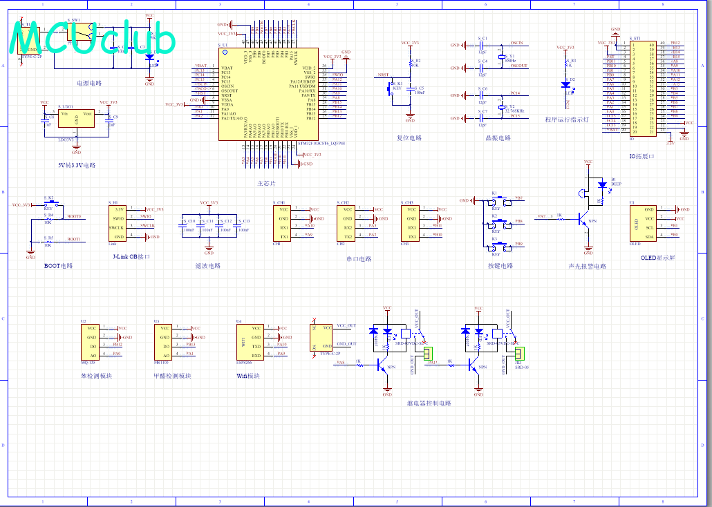 PCB图是由原理图导出,封装很大一部分都是作者自己绘制,不提供封装库,只提供连接好的源文件,可以直接在嘉立创进行打板。两层板,上下覆铜接地。