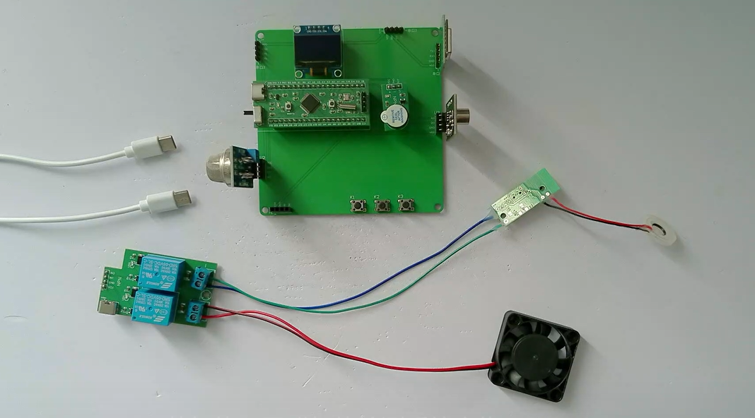 1、通过MQ-7模块检测CO值,当CO值大于设置最大值时开启风扇和净化器,同时进行声光报警提醒