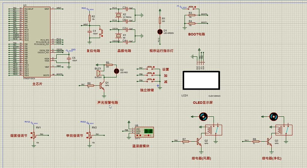 注意:部分实物元器件仿真中没有,仿真中会用其他工作原理相似的元件代替,这样可能导致实物程序和仿真程序不一样
