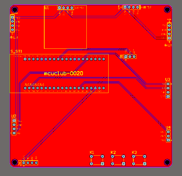 底板:底板在嘉立创进行打板,为绿色PCB板,两层板,厚度1.2,上下覆铜接地。元器件基本上为插针式,个别降压芯片会使用贴片式。