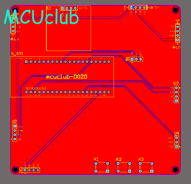 注意:PCB图中间有一个项目编号,隐藏在单片机底座下,插入单片机后不会看到。如果想截没有项目编号的PCB图,可在PCB源文件中点击删除。另外,如果想在实物PCB板上加自己的信息(比如日期、学号、姓名等),可联系客服。