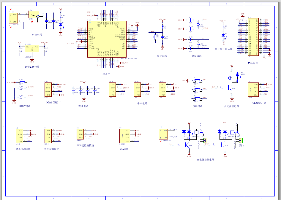 PCB图是由原理图导出,封装很大一部分都是作者自己绘制,不提供封装库,只提供连接好的源文件,可以直接在嘉立创进行打板。两层板,上下覆铜接地。