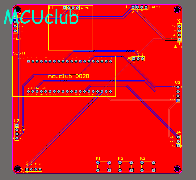 注意:PCB图中间有一个项目编号,隐藏在单片机底座下,插入单片机后不会看到。如果想截没有项目编号的PCB图,可在PCB源文件中点击删除。另外,如果想在实物PCB板上加自己的信息(比如日期、学号、姓名等),可联系客服。
