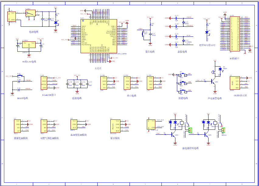 PCB图是由原理图导出,封装很大一部分都是作者自己绘制,不提供封装库,只提供连接好的源文件,可以直接在嘉立创进行打板。两层板,上下覆铜接地。