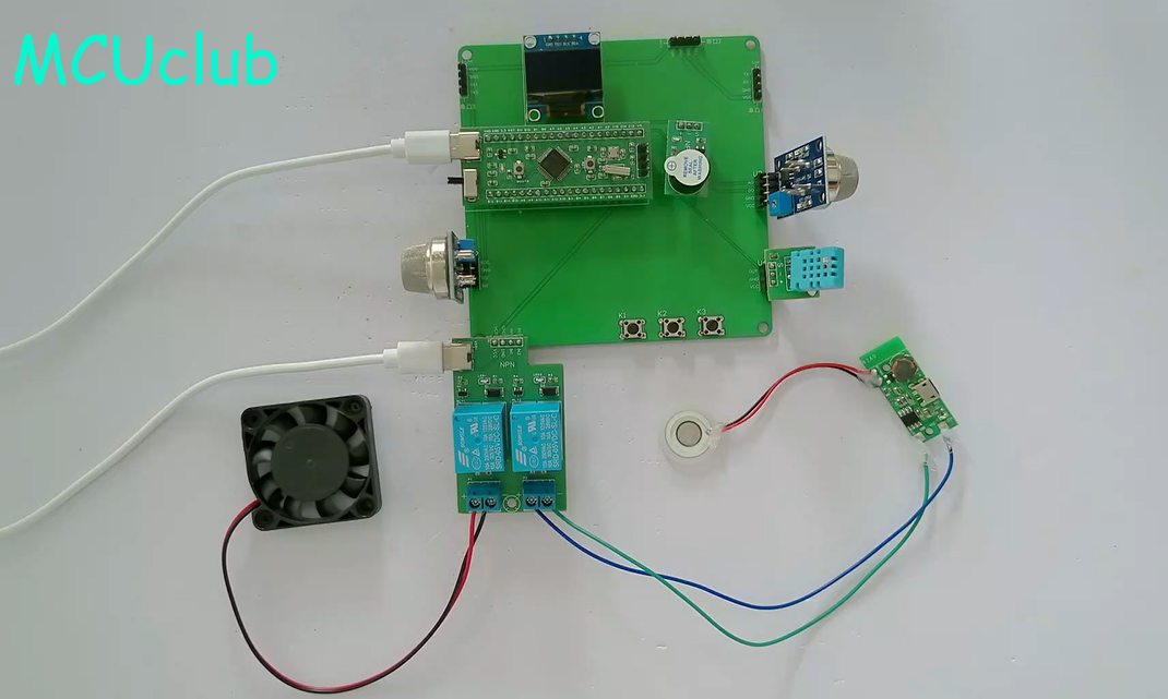 扩展功能:通过蓝牙模块将测量数据发送到手机端,手机端可设置温湿度上下限值、烟雾及可燃气体最大值,另外,当烟雾值小于等于设置最大值并且可燃气体值小于等于设置最大值时,可远程控制风扇或净化器开关