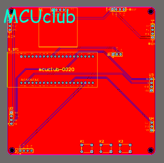 注意:PCB图中间有一个项目编号,隐藏在单片机底座下,插入单片机后不会看到。如果想截没有项目编号的PCB图,可在PCB源文件中点击删除。另外,如果想在实物PCB板上加自己的信息(比如日期、学号、姓名等),可联系客服。