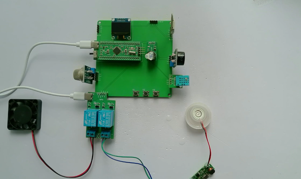 4、通过按键设置温湿度上下限值、烟雾及CO最大值,另外,当烟雾值小于等于设置最大值并且CO值小于等于设置最大值时,可手动控制风扇或净化器开关