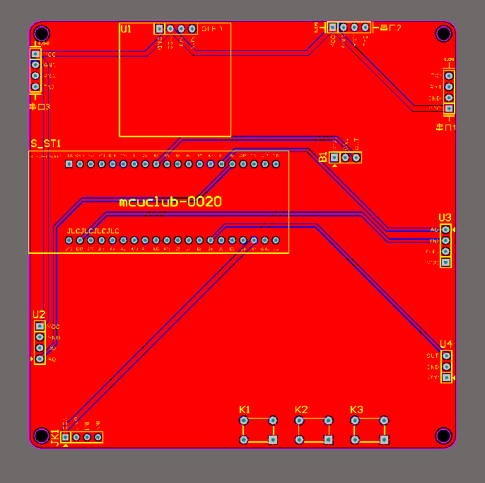 注意:PCB图中间有一个项目编号,隐藏在单片机底座下,插入单片机后不会看到。如果想截没有项目编号的PCB图,可在PCB源文件中点击删除。另外,如果想在实物PCB板上加自己的信息(比如日期、学号、姓名等),可联系客服。