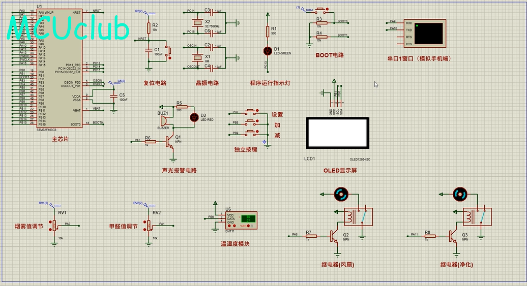 注意:部分实物元器件仿真中没有,仿真中会用其他工作原理相似的元件代替,这样可能导致实物程序和仿真程序不一样