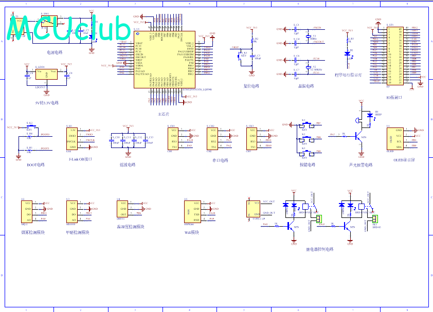 PCB图是由原理图导出,封装很大一部分都是作者自己绘制,不提供封装库,只提供连接好的源文件,可以直接在嘉立创进行打板。两层板,上下覆铜接地。