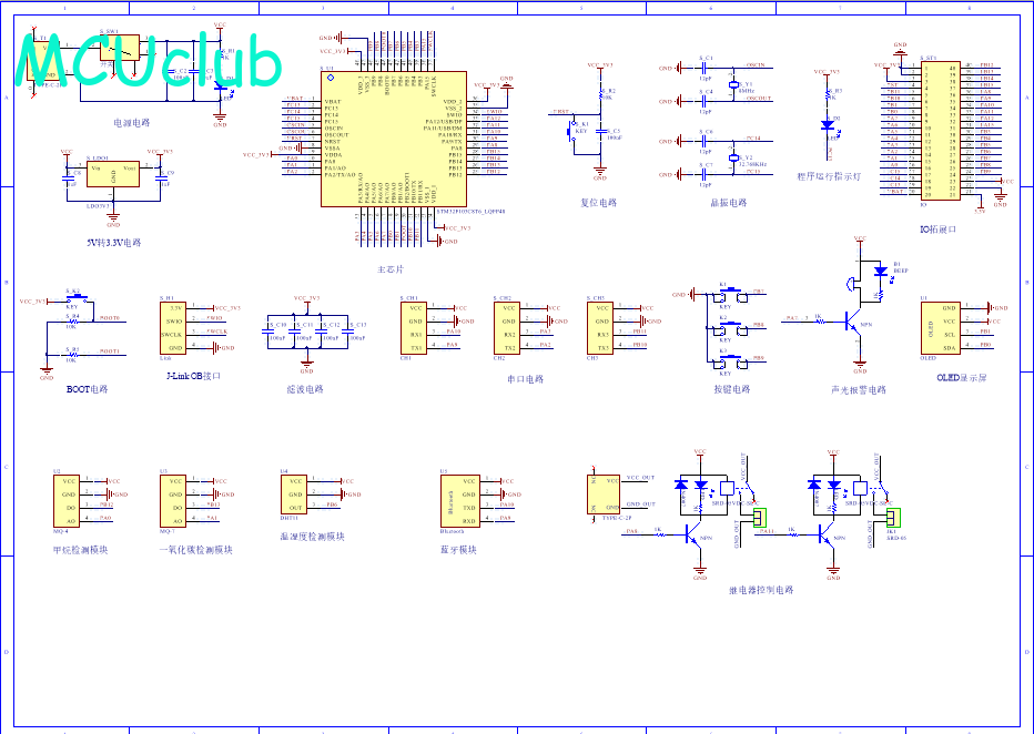 PCB图是由原理图导出,封装很大一部分都是作者自己绘制,不提供封装库,只提供连接好的源文件,可以直接在嘉立创进行打板。两层板,上下覆铜接地。