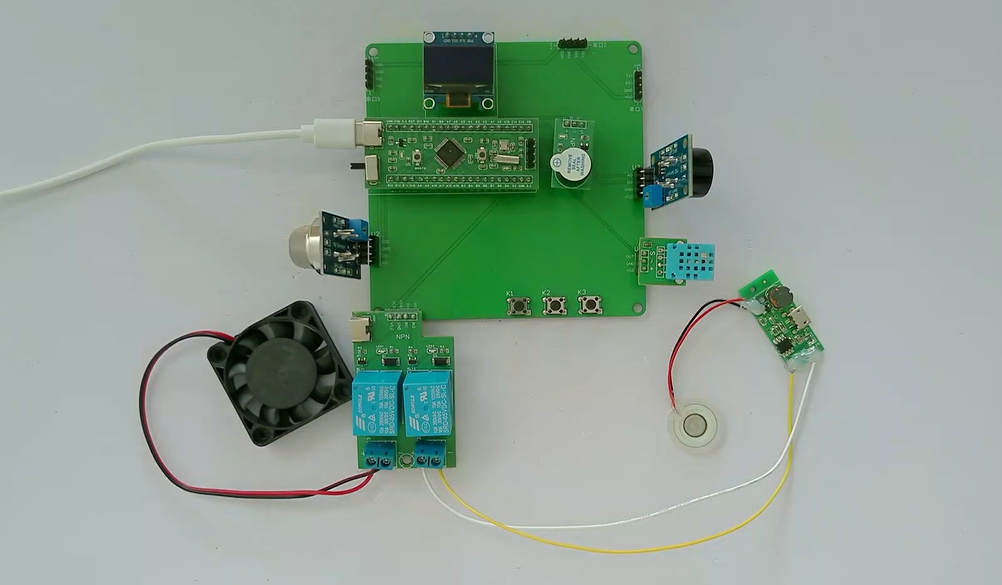3、通过MQ-7模块检测CO值,当CO值大于设置最大值时开启风扇和净化器,同时进行声光报警提醒