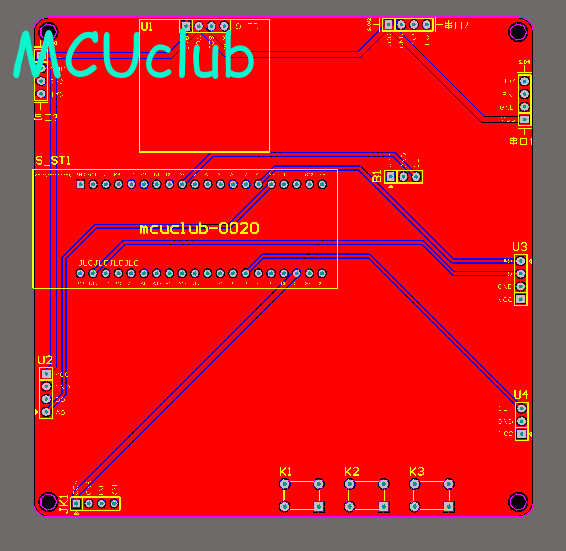 PCB图是由原理图导出,封装很大一部分都是作者自己绘制,不提供封装库,只提供连接好的源文件,可以直接在嘉立创进行打板。两层板,上下覆铜接地。