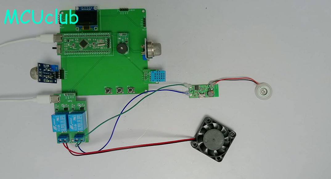 3、通过MQ-135模块检测苯气体值,当苯气体值大于设置最大值时开启风扇和净化器,同时进行声光报警提醒